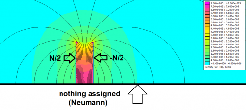 | Comparison of symmetrical models in FEMM, N = number of turns, N/2 = half of turns |